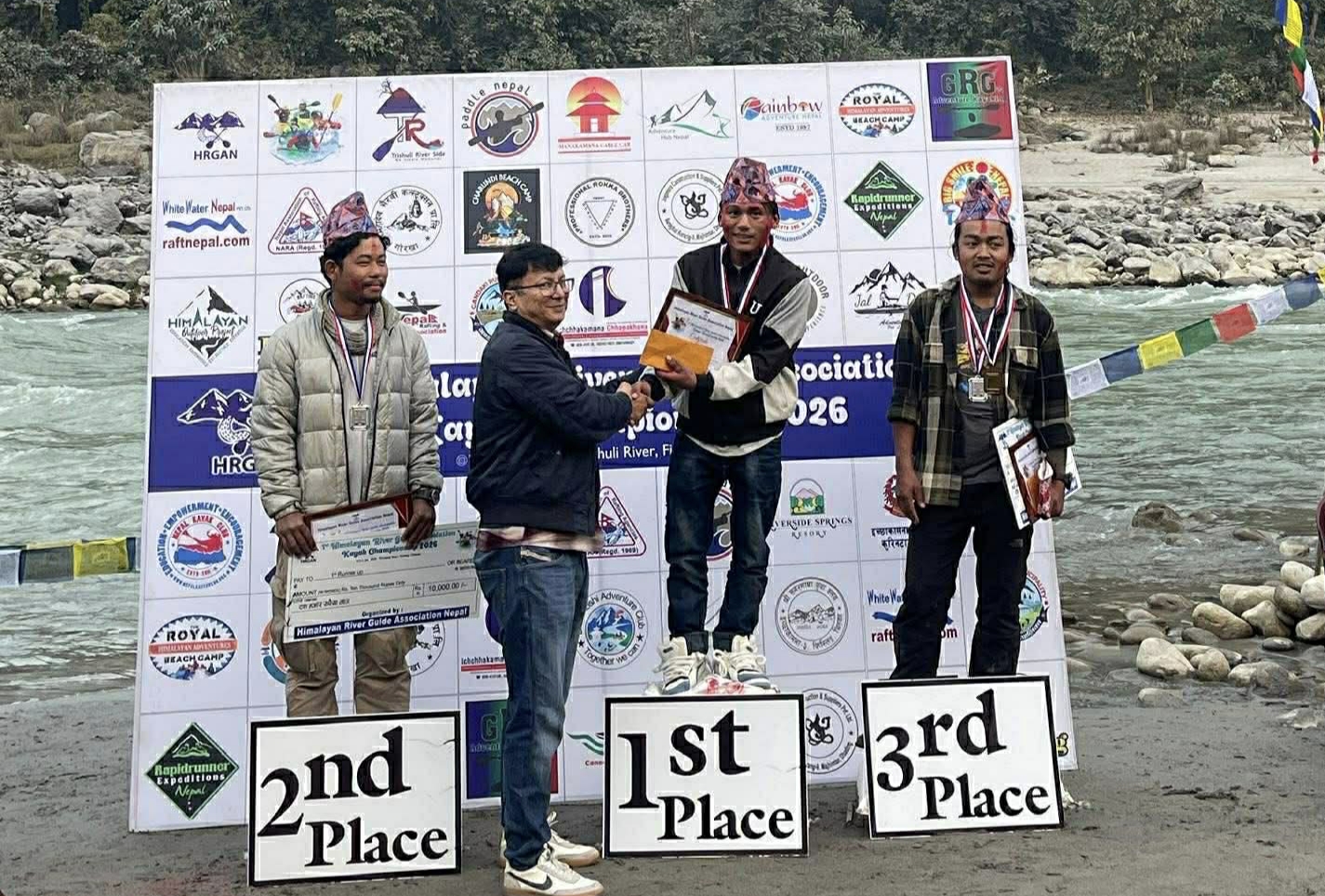 हिमालय रिभर गाइड संघका अध्यक्ष डोलबहादुर गुरुङको अध्यक्षतामा भएको कार्यक्रममा पदक विजेता खेलाडीलाई नेपाल ¥याफ्टिङ एन्ड क्यानोइङ संघका अध्यक्ष एवं नेपाल ओलम्पिक कमिटीका महासचिव राजीव श्रेष्ठले पुरस्कार वितरण गरेका थिए ।