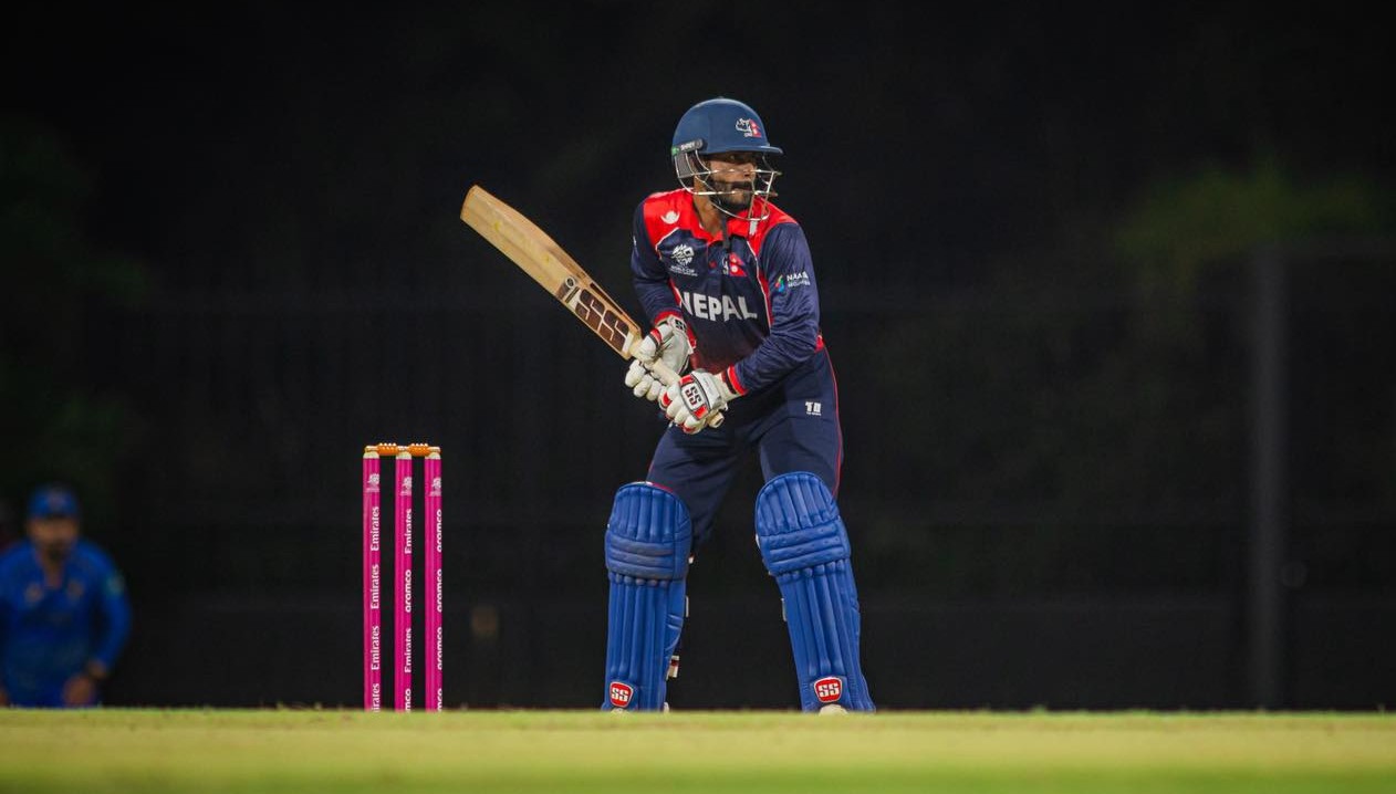 नेपालका लागि दीपेन्द्र र आरिफले अर्धशतक प्रहार गरे । आरिफले ३७ बलमा ६१ र दीपेन्द्रले ३१ बलमा ५० रन जोडे । कप्तान रोहित पौडेल १६ रनमा पवेलियन फर्किँदा ओपनरद्धय कुशल भुर्तेल र आसिफ सेखले समान ८ रन बनाए । रोहित र आसिफ रनआउटको शिकार बनेका थिए ।