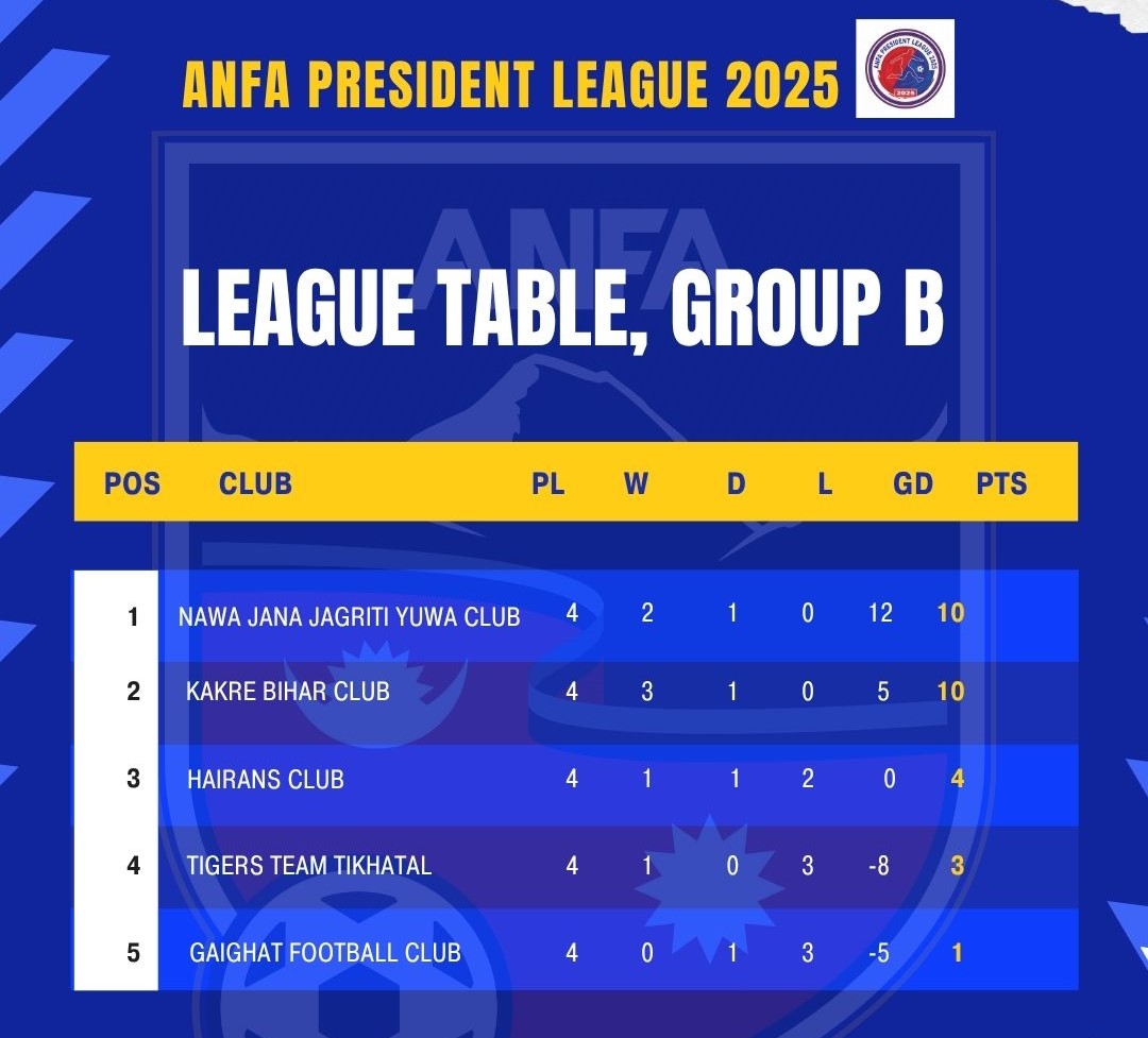 जितसँगै चार खेलमा १० अंक जोड्दै नव जन जागृति अंकतालिकाको शीर्ष स्थानमा रहँदै सेमिफाइनलमा पुगेको हो । समान अंक भएपनि गोल भिन्नतामा पछि पर्दै काँक्रे बिहार दोस्रो स्थानमा रह्यो ।