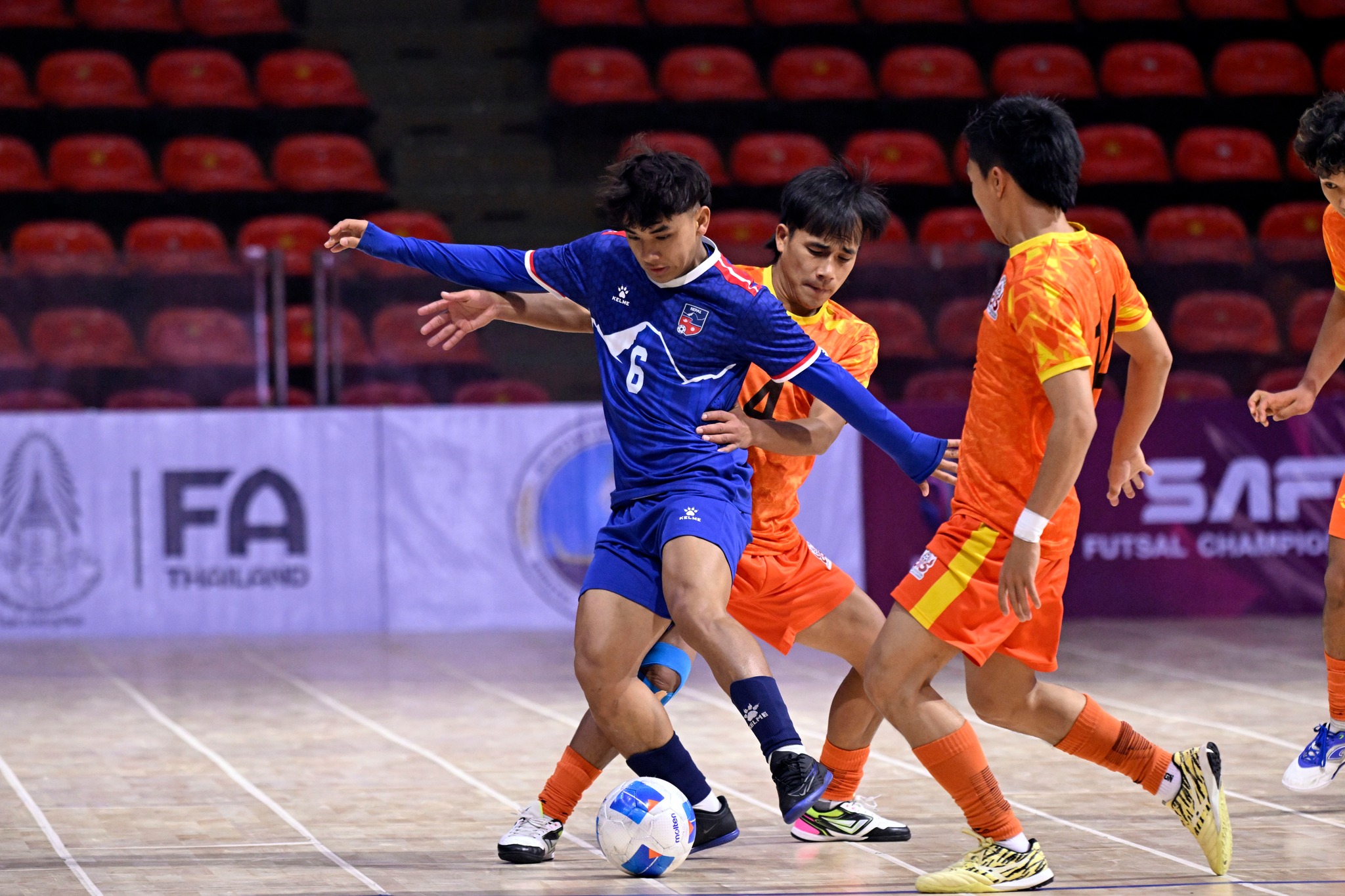 सोमबार बैंककस्थित ह्वामाक इन्डोर रंगशालामा नेपालले भुटानमाथि पुनरागमन जित हासिल गरेको हो । खेलको १६औं मिनेटमा जेत्सुएन डोर्जीले भुटानलाई अग्रतामा ल्याएका थिए । दोस्रो हाफमा नेपालले चार गोल गर्यो ।